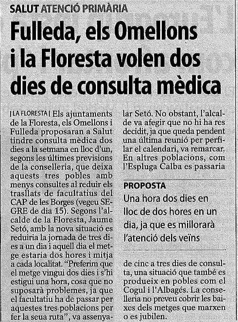Aquest blog és un mitjà independent d'informació sobre Fulleda, amb notícies actuals, projectes de futur i ullades cap al passat. Està obert a tothom que s'expressi amb un mínim d'educació. ÉS VOSTRE!!!